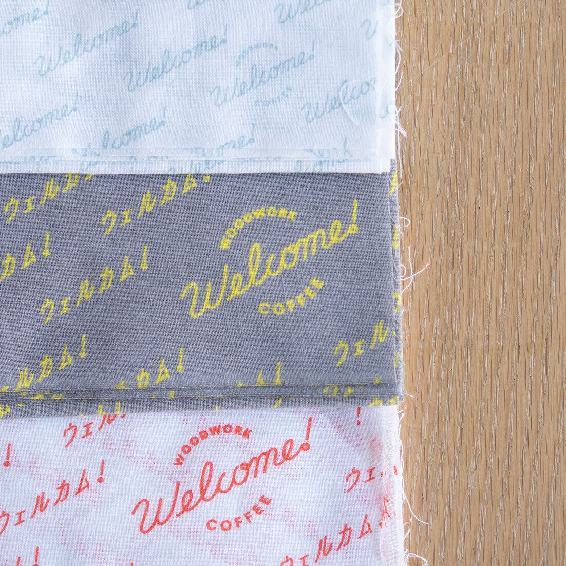 WOODWORK Welcome! てぬぐい [白地×水色 , 白地×朱色]